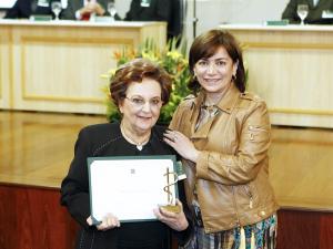 homenageada pela Jubileu de Ouro, recebendo do CRM-PR o Diploma de Mérito Ético-Profissional pelo histórico